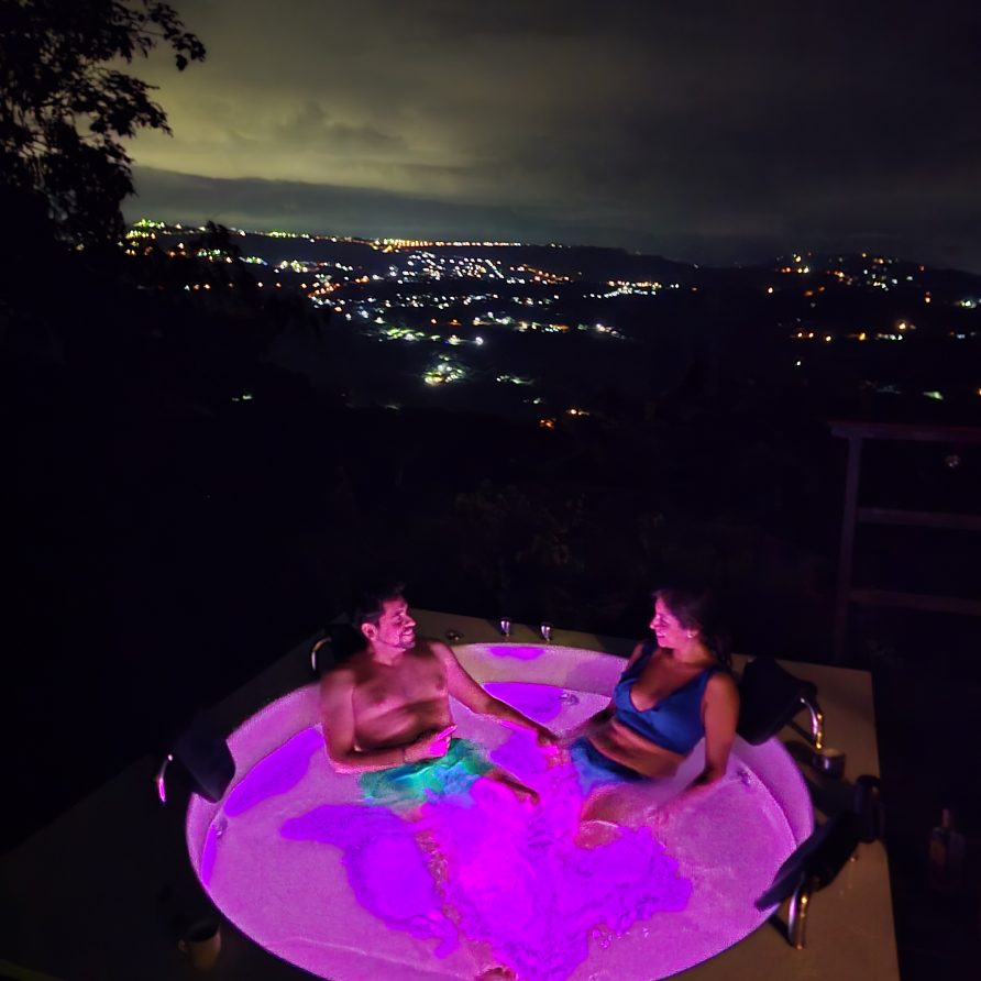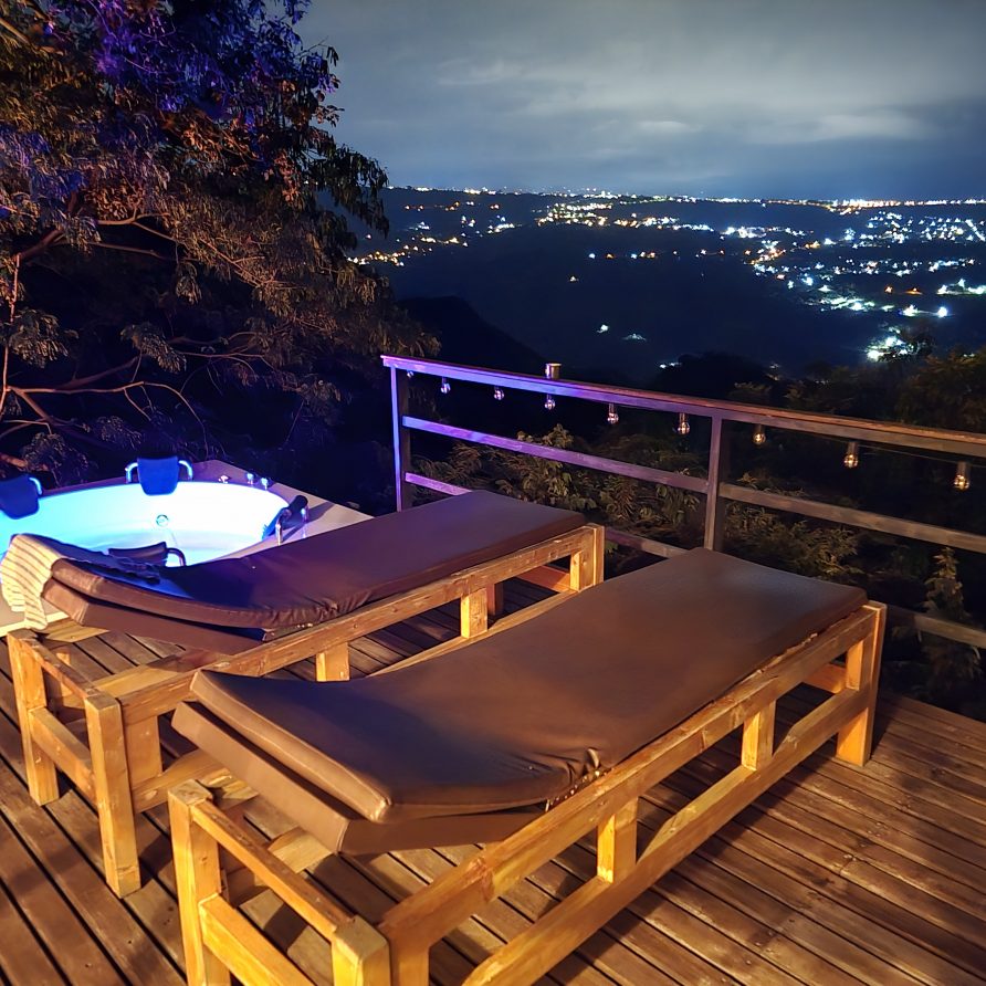 - Comodidades Aire acondicionado, Altavoz Bluetooth, Baño descubierto, Cama Doble, Cama semidoble, Desayuno, Estación de Café, Jacuzzi grande, Jacuzzi privado exterior en Terraza, Juegos de Mesa, Malla Catamarán, Mini Bar, Parqueadero, Terraza con Chimenea, Zona BBQ